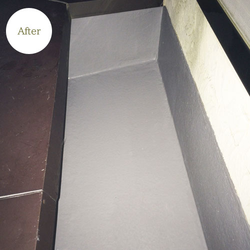②パラペット床・・・壁立上り部分とドレン排水から玄関上の軒に雨染みが出来ていました