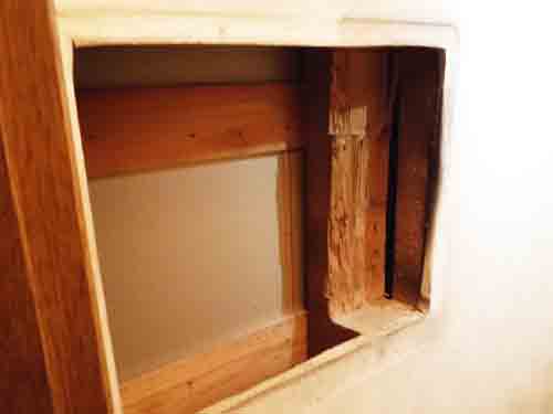 トイレの壁の内部を見てみると、埋め込み型の収納を付けるために、柱を切り欠いてしまっているのです。
