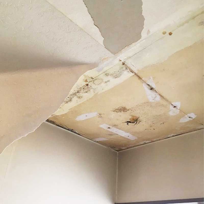 2階のトイレから水漏れが起きてしまい天井がふかふかになってカビが発生しておりました。