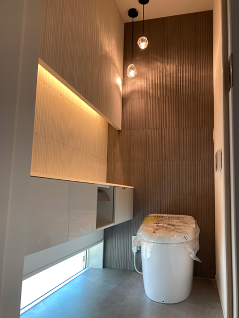 今回は間接照明やアクセントにタイルを使って、更に洗練されたトイレ空間になりました。