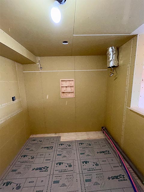 下地の施工を行った後は壁材となるボードを張っていきます。