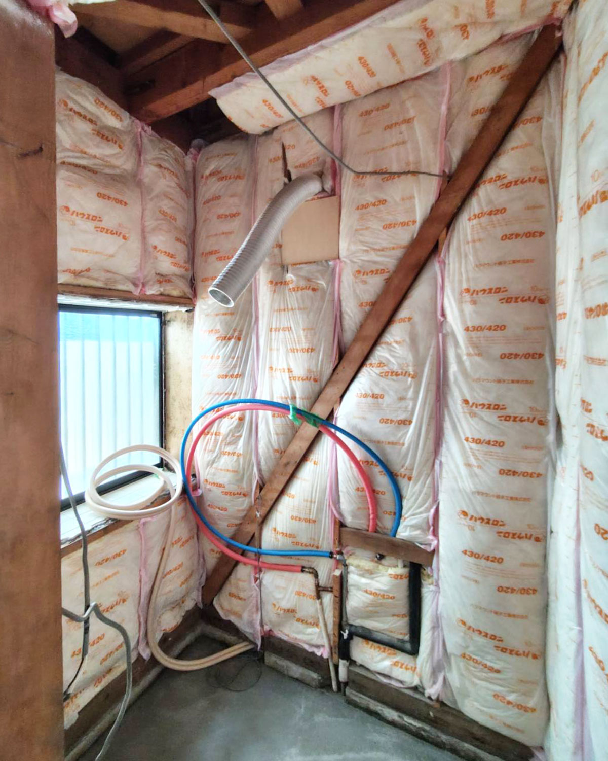 浴室を解体している今しかできない工事として、断熱材の充填と内窓の設置も行いました。