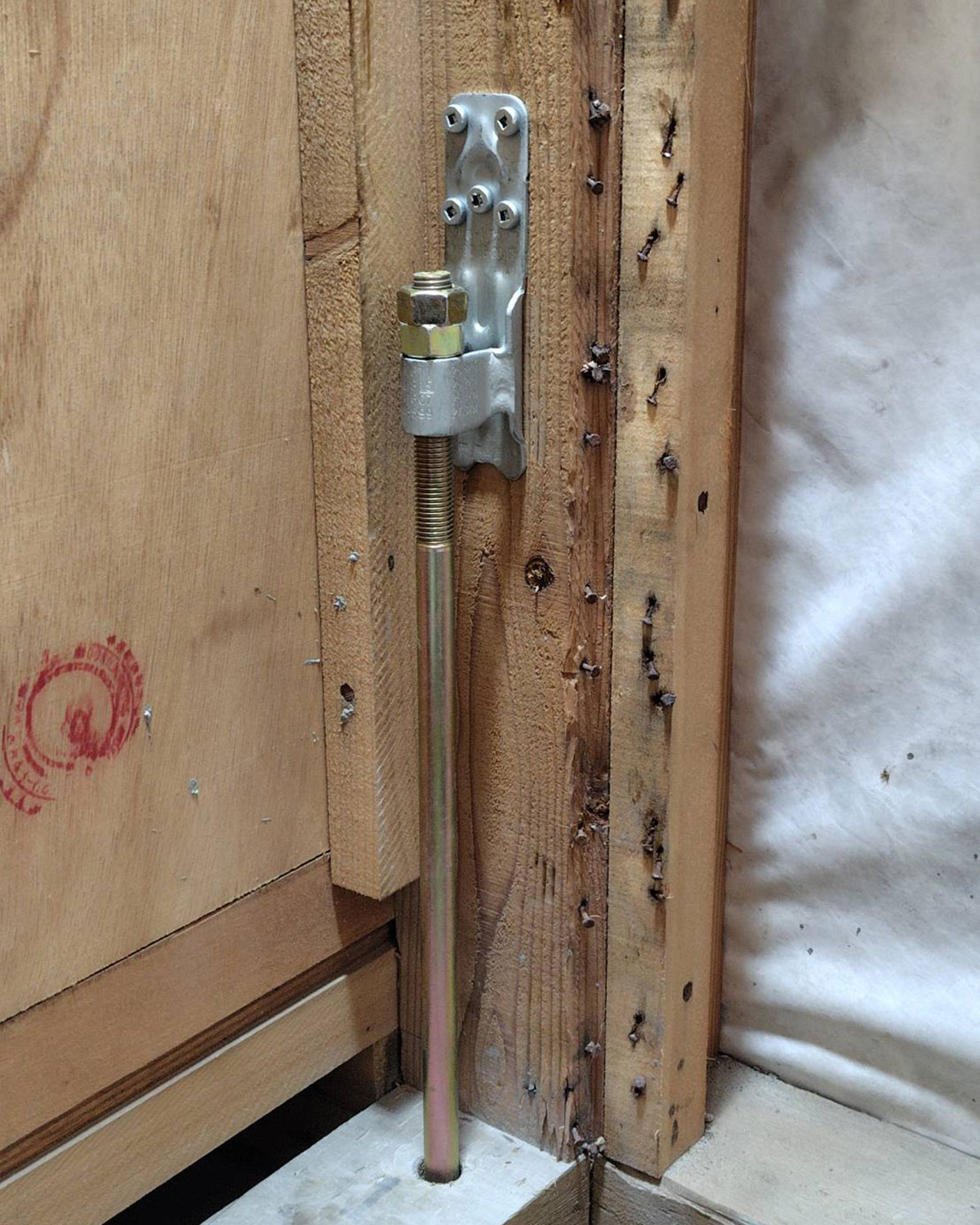 今回の工事では、ホールダウン金物を取り付けて耐震補強を行いました。