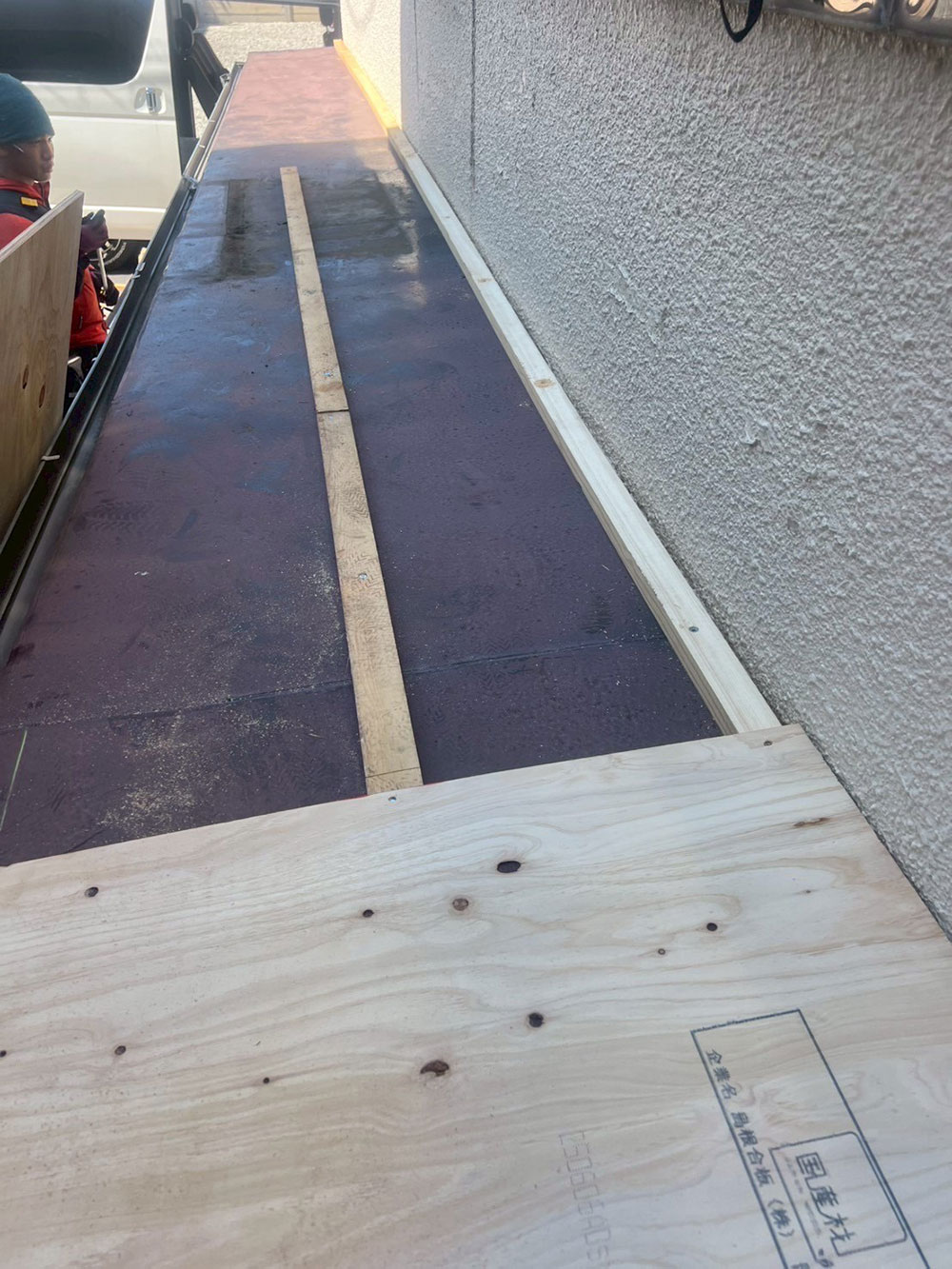 まず、既存の屋根を確認しながら下地の補強を実施。