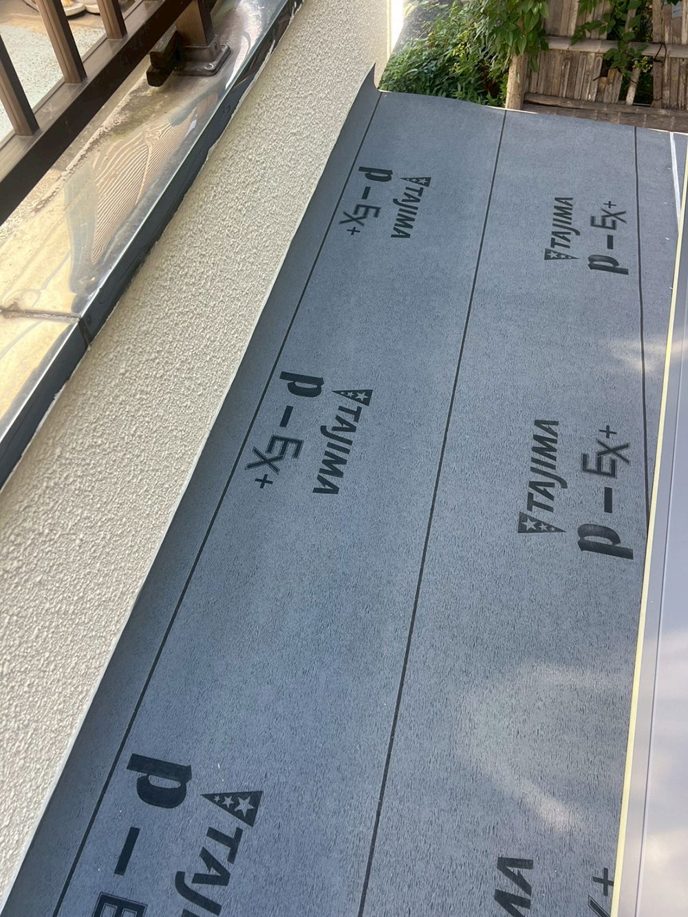 その上に、防水層となる改質アスファルトルーフィングを全面に貼ります。