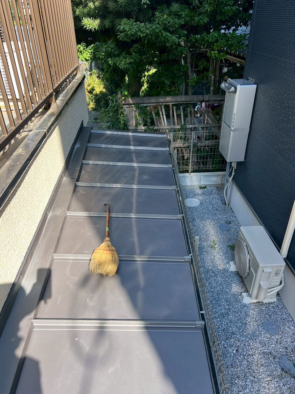 今回は、下屋根からの雨漏り修理として、屋根のカバー工法(重ね葺き工事)を行わせていただきました。