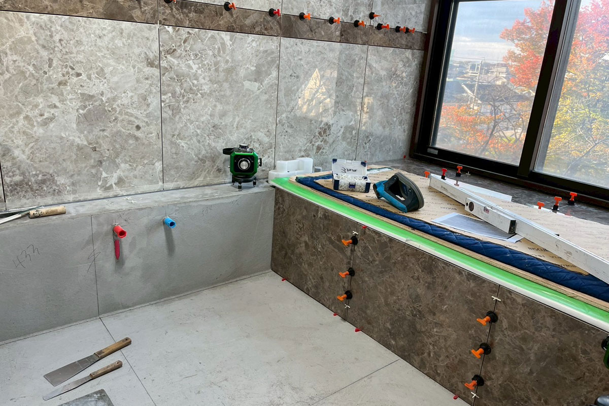 壁・カウンター・浴槽まわりのタイル張り