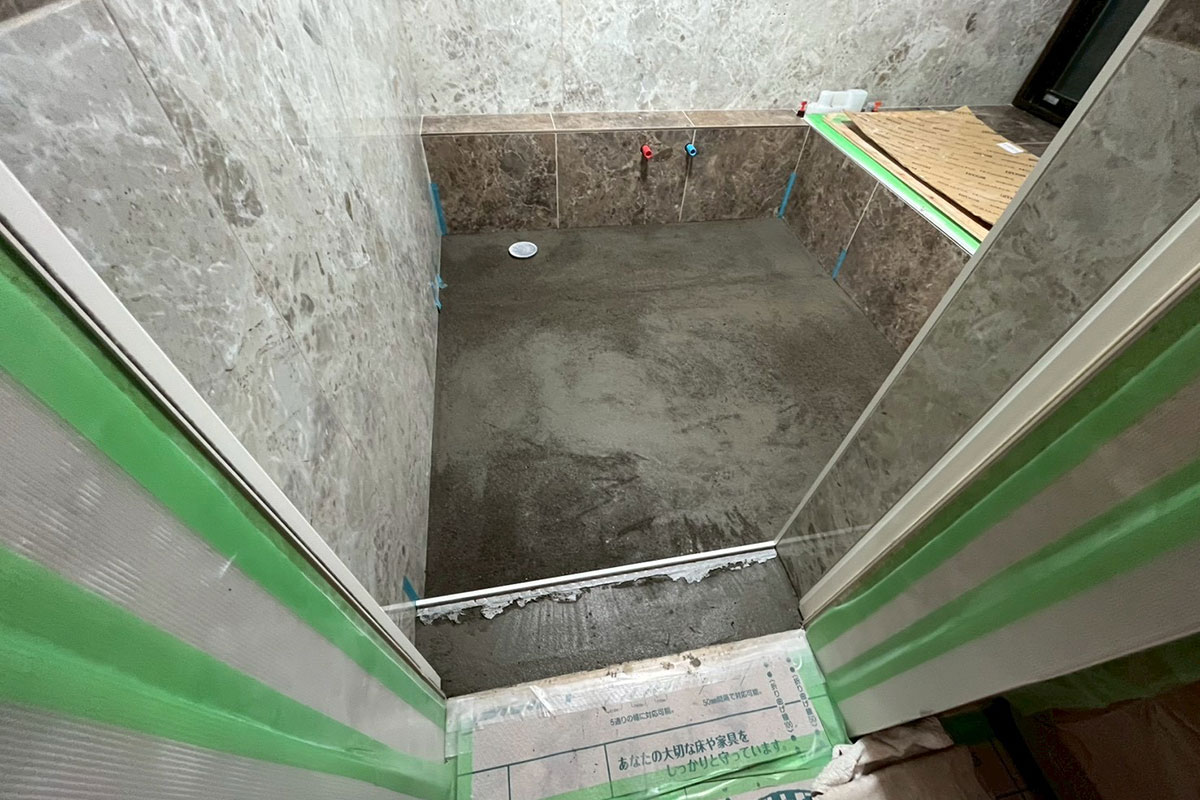 在来浴室では、排水位置や勾配によって必要な高さが変わるため、職人の経験が仕上がりに大きく影響します。
