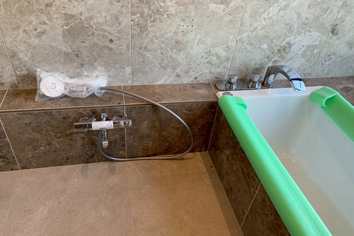 タイル仕上げが終わると、・シャワー水栓