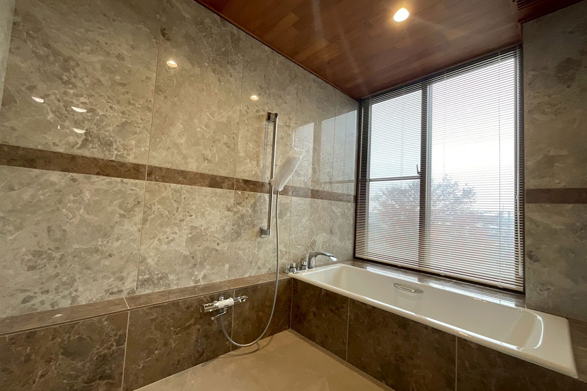 長い工程を経て、こだわりの詰まった在来タイル浴室がついに完成しました。