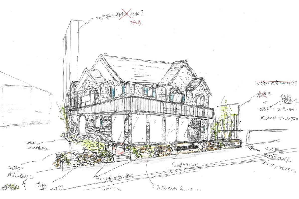 無垢スタイル建築設計では、南欧の街並みや古城のような雰囲気をテーマにした『Green&House』ブランドを展開しています。自然素材と意匠性を融合させた空間づくりにより、「物語を感じる店舗デザイン」をご提案しています。