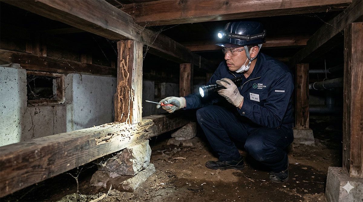 実際に現地で床を触った瞬間、シロアリ被害の可能性を感じました。