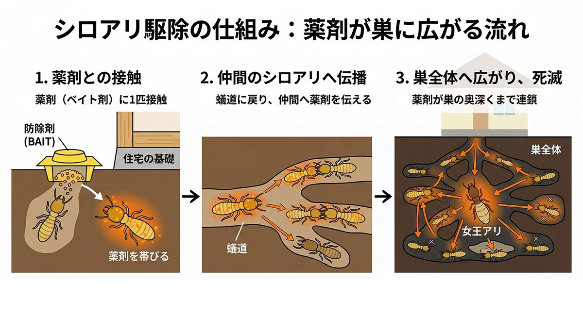 シロアリ駆除の薬は遅効性