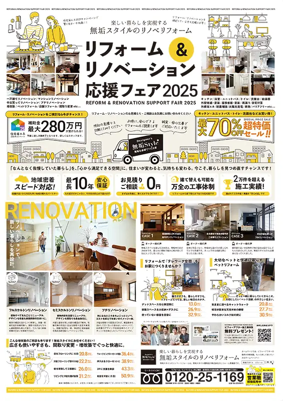 無垢スタイルのリフォームが一部の地域の皆様だけに不定期にお届けしているリフォーム広告チラシ。このサイトをご覧頂いているあなただけに特別公開いたします。気になる商品があればお気軽にお問い合せください。