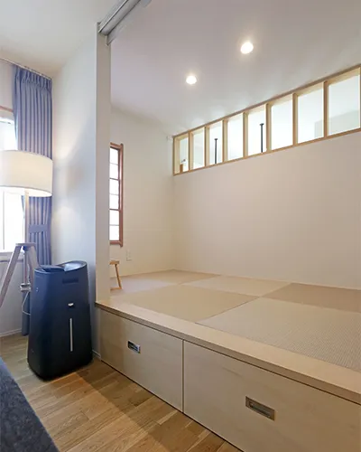 - 妻の要望である「対面キッチンにしたい」というのが、1番の希望でした。当時荷物置きになっていた和室をもっと有効活用したい思いもありましたね。また、無垢床はこだわりとして入れたかったです。小上がり和室とTV用の腰壁の提案は、思いつかなかったアイデアなのでとてもよかったです。