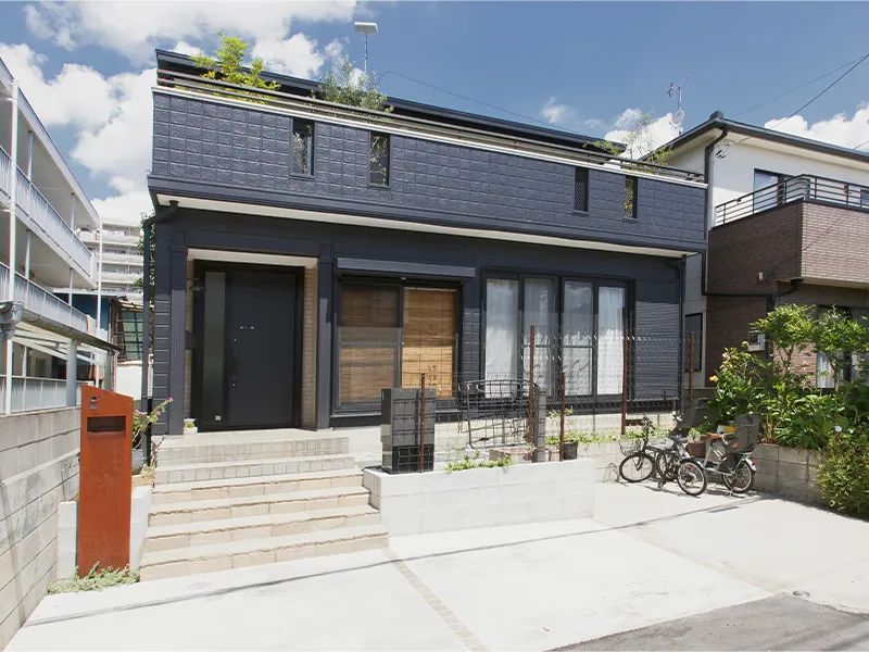 築30年の「中古を買ってリノベーション」の施工事例です。S様のコンセプトは「空とつながる我が家」。アウトドア好きのご家族で、12帖の広々とした2階バルコニーが物件購入の決め手でした。そのバルコニーを活かすため、メインのLDKを1階から2階へ大胆に間取り変更。バルコニーから光が射し込む、20.4帖の広く開放的な空間に生まれ変わりました。色・素材・照明などにも強いこだわりをお持ちで、かっこよくシンプルに、かつ個性の光るデザインに仕上げました。また後からお客様自身でDIYして作り込む考えをお持ちのため、今回の工事を完成形とせず、あえて余白を残している点も特徴的な事例となっています。